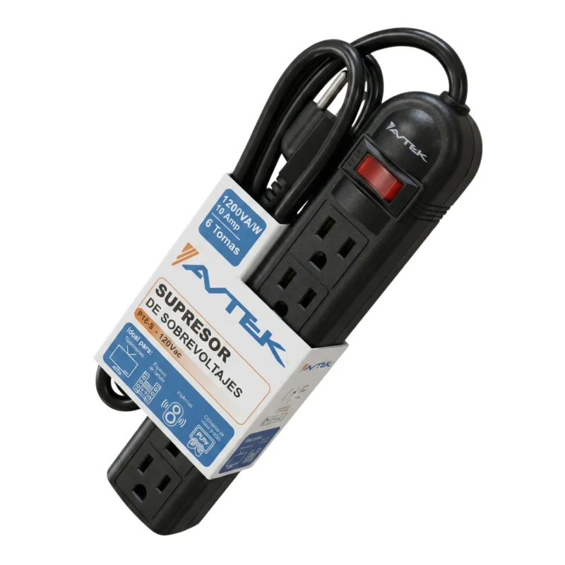 Regleta Supresora de Voltaje 6 tomas, 10Amp 120Vac P16-S, Avtek