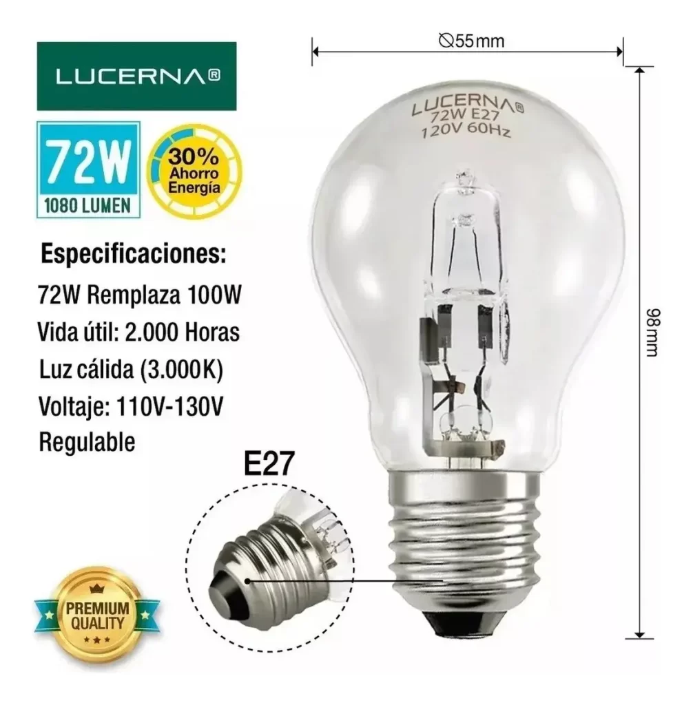 Bombillo Halógeno Bulbo A55 – 72W Rosca E27 – 2.7K – Lucerna