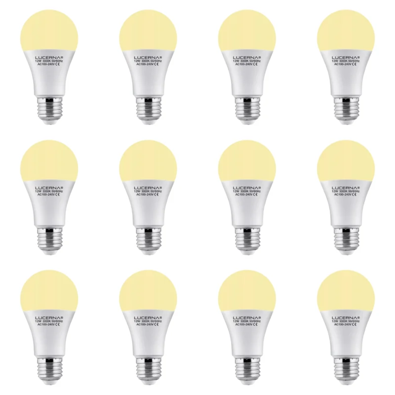 12 Pack Bombillo Bulbo A60, 12W, Rosca E27, 3K, Lucerna