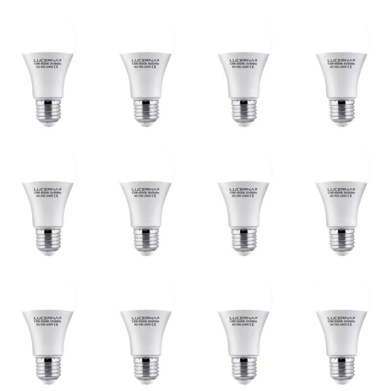 12 Pack Bombillo Bulbo A60, 12W, Rosca E27, 6500K, Lucerna
