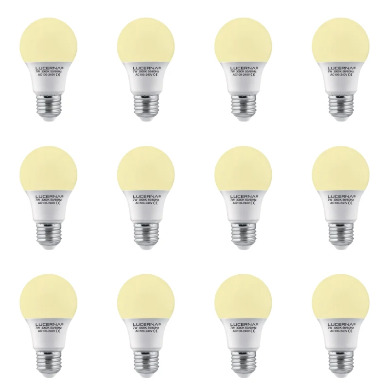 12 Pack Bombillo Bulbo A60, 7W, Rosca E27, 3000K, Lucerna