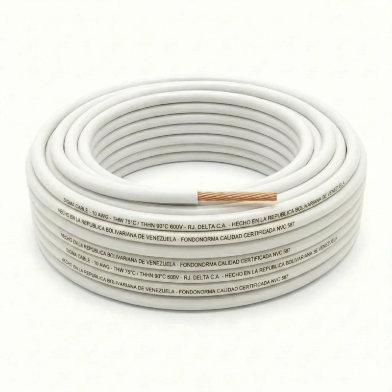 Cable THHW Calibre 10 AWG Blanco, Rollo 100m, Sigma