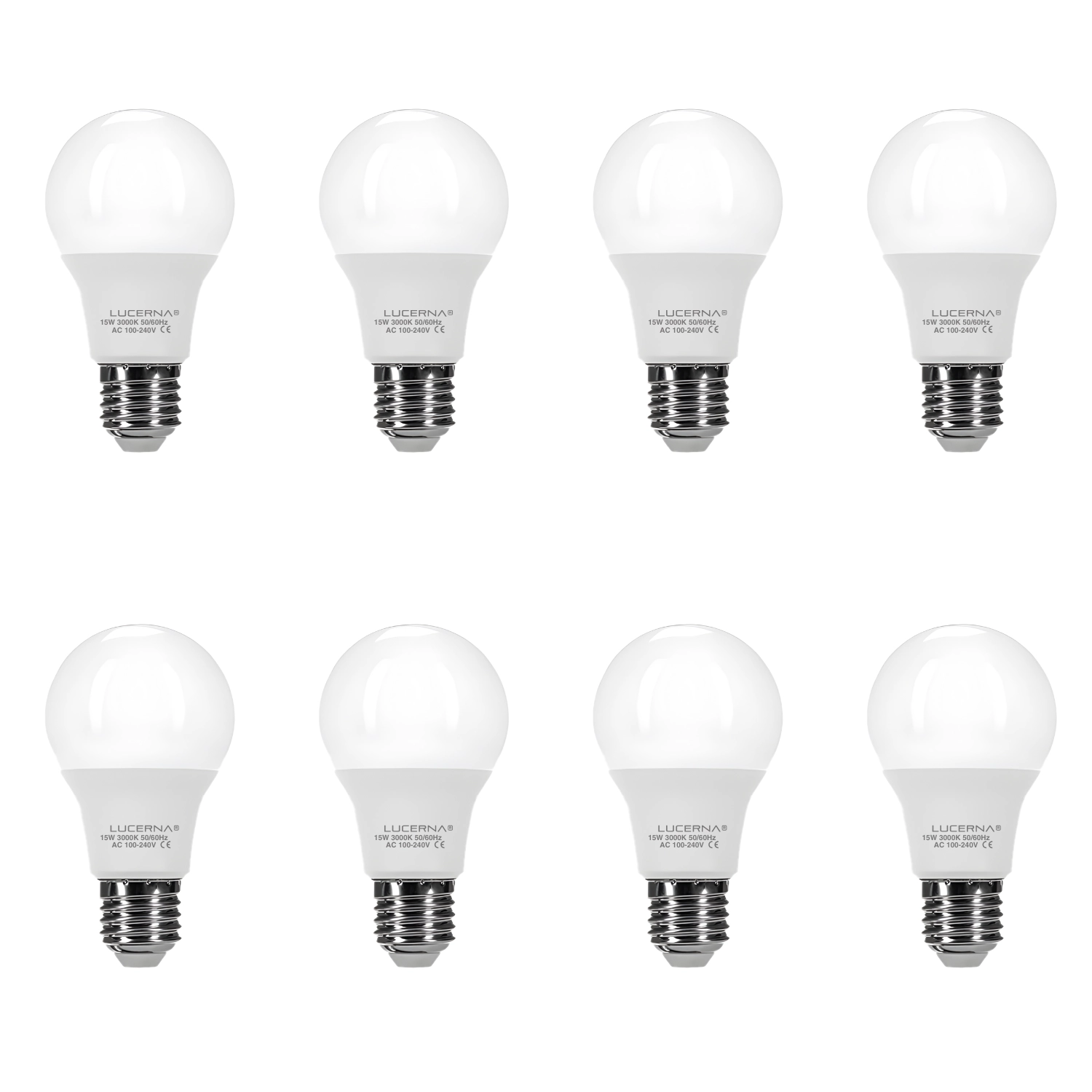 8 Pack Bombillo LED Bulbo A60, 15W, Rosca E27, 3000K, Lucerna