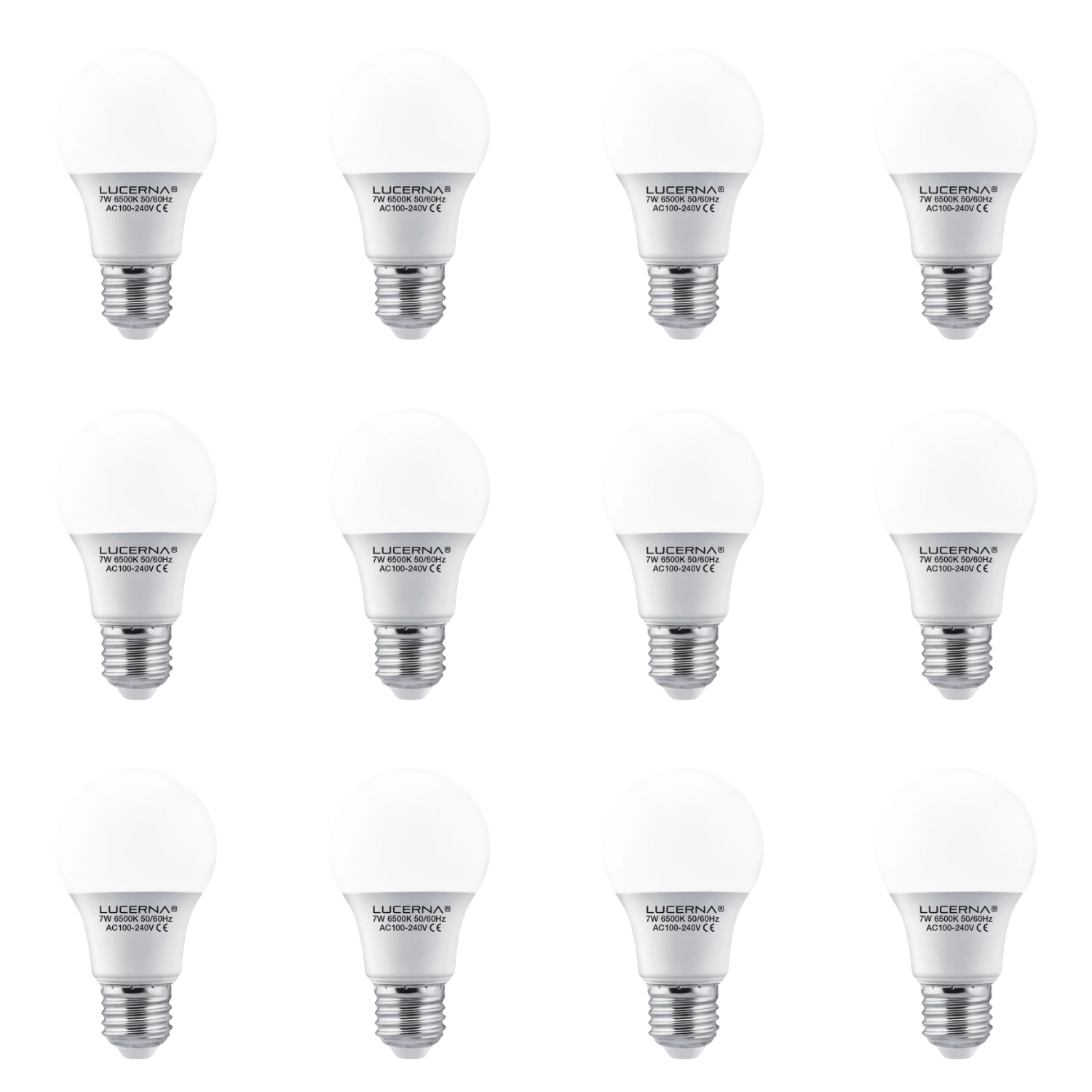 12 Pack Bombillo Bulbo A60, 7W, Rosca E27, 6500K, Lucerna