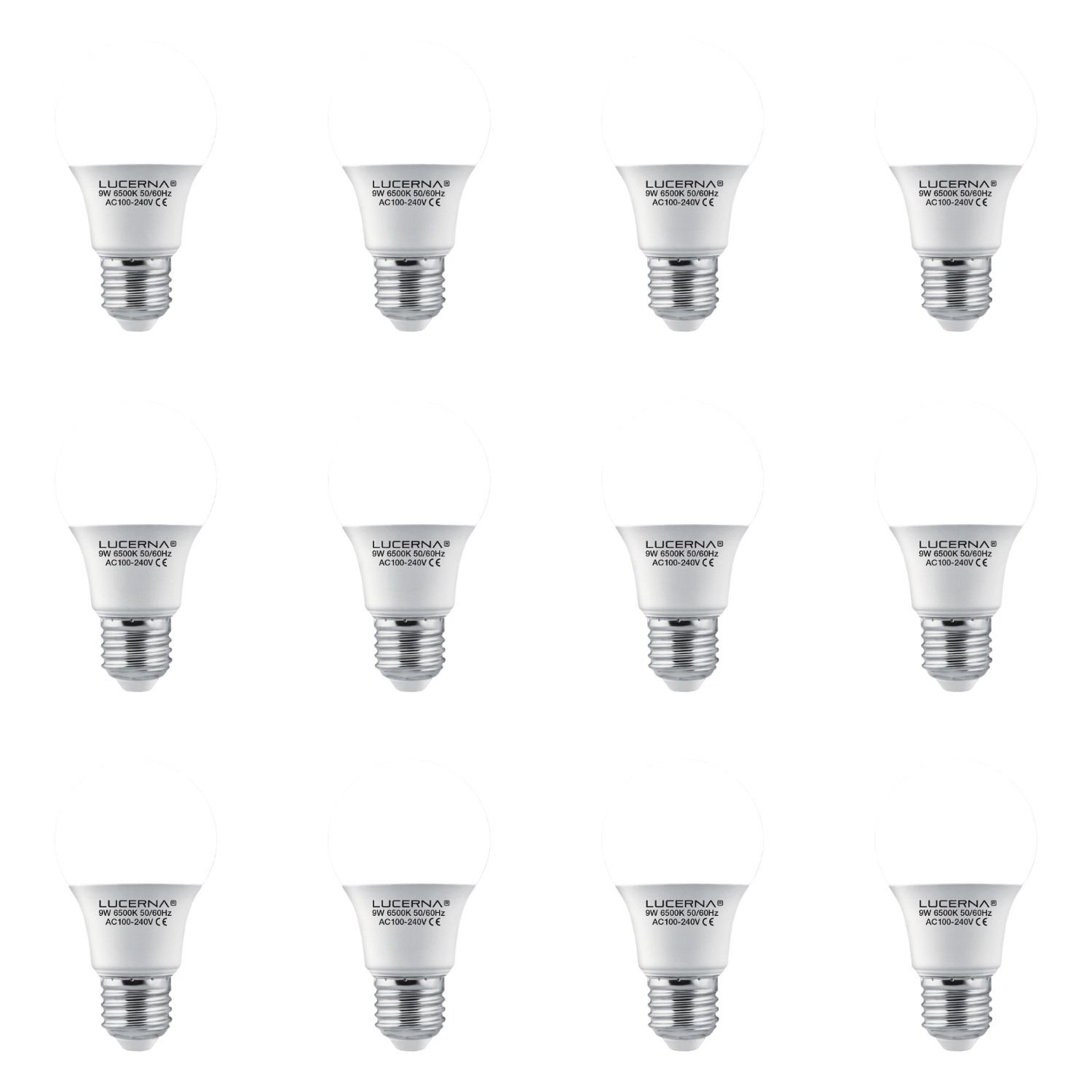 12 Pack Bombillo Bulbo A60, 9W, Rosca E27, 6500K, Lucerna