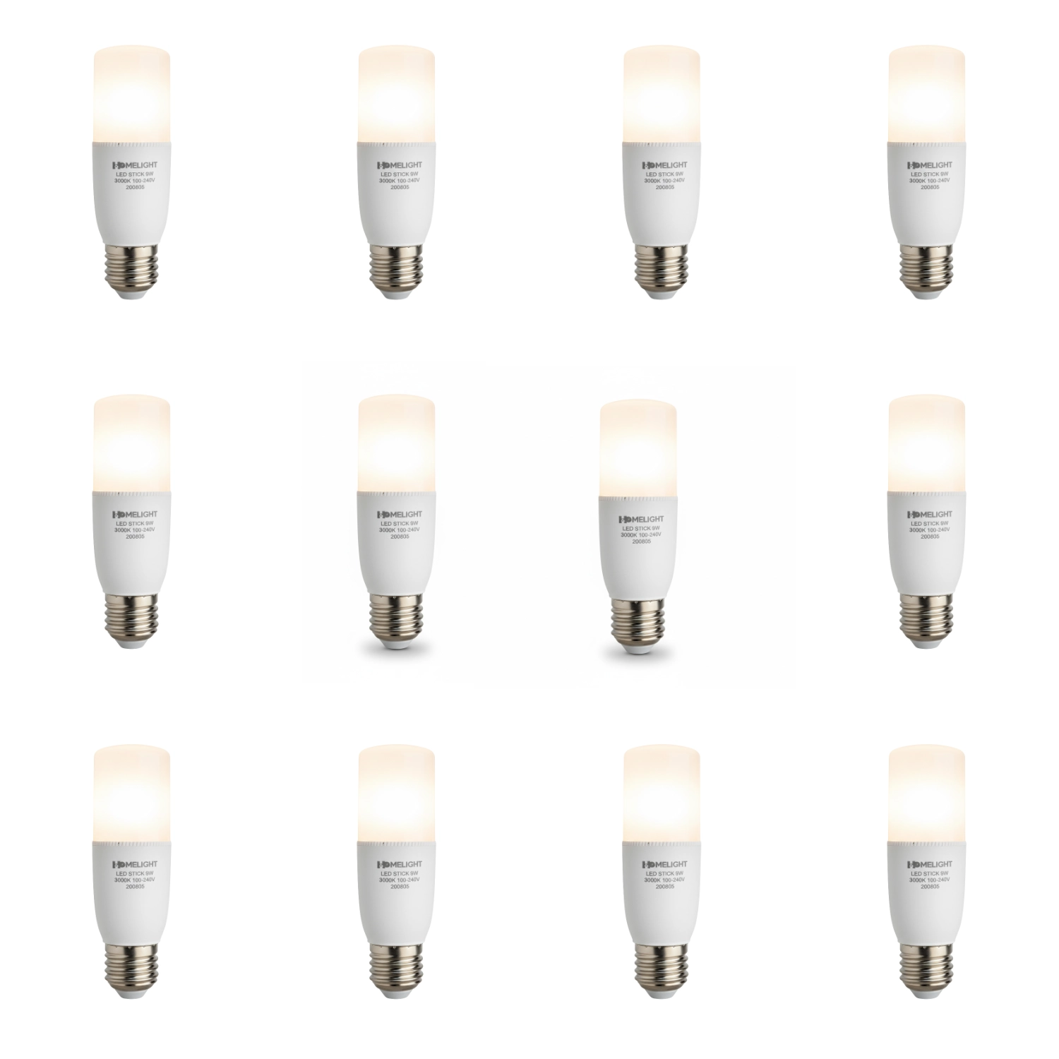 12 Pack Bombillo Tipo Stick, 9W, Rosca E27, 3000K, HomeLight