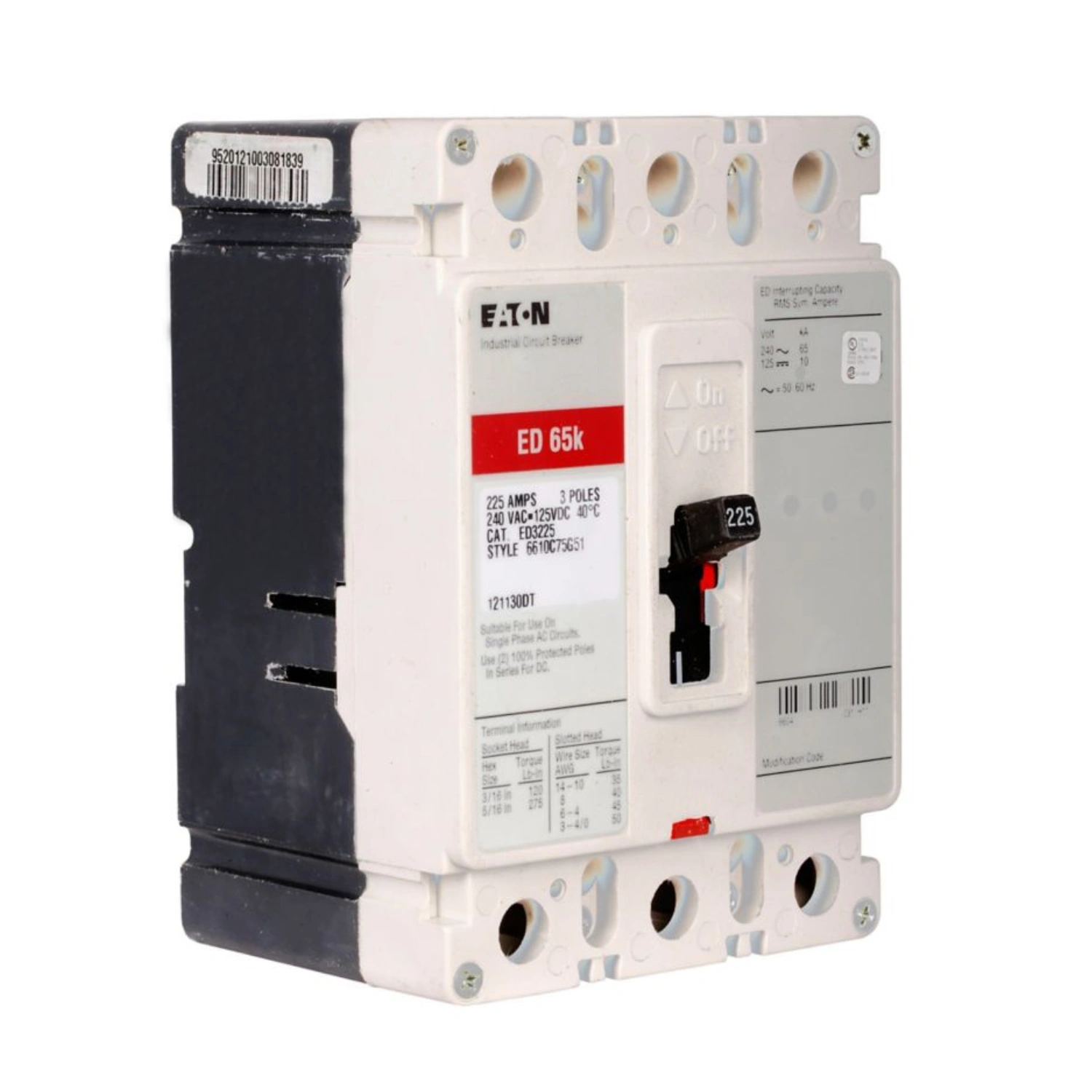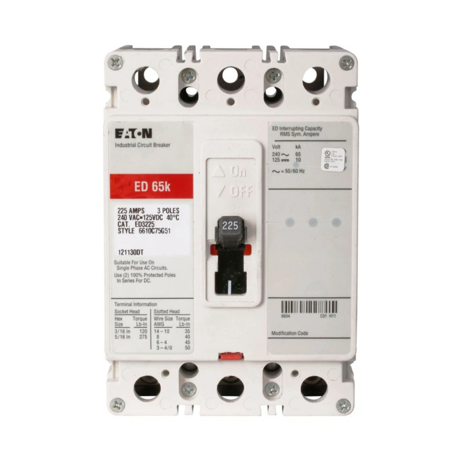 Breaker Caja Moldeada 3x225A, Línea ED, Serie C, Eaton