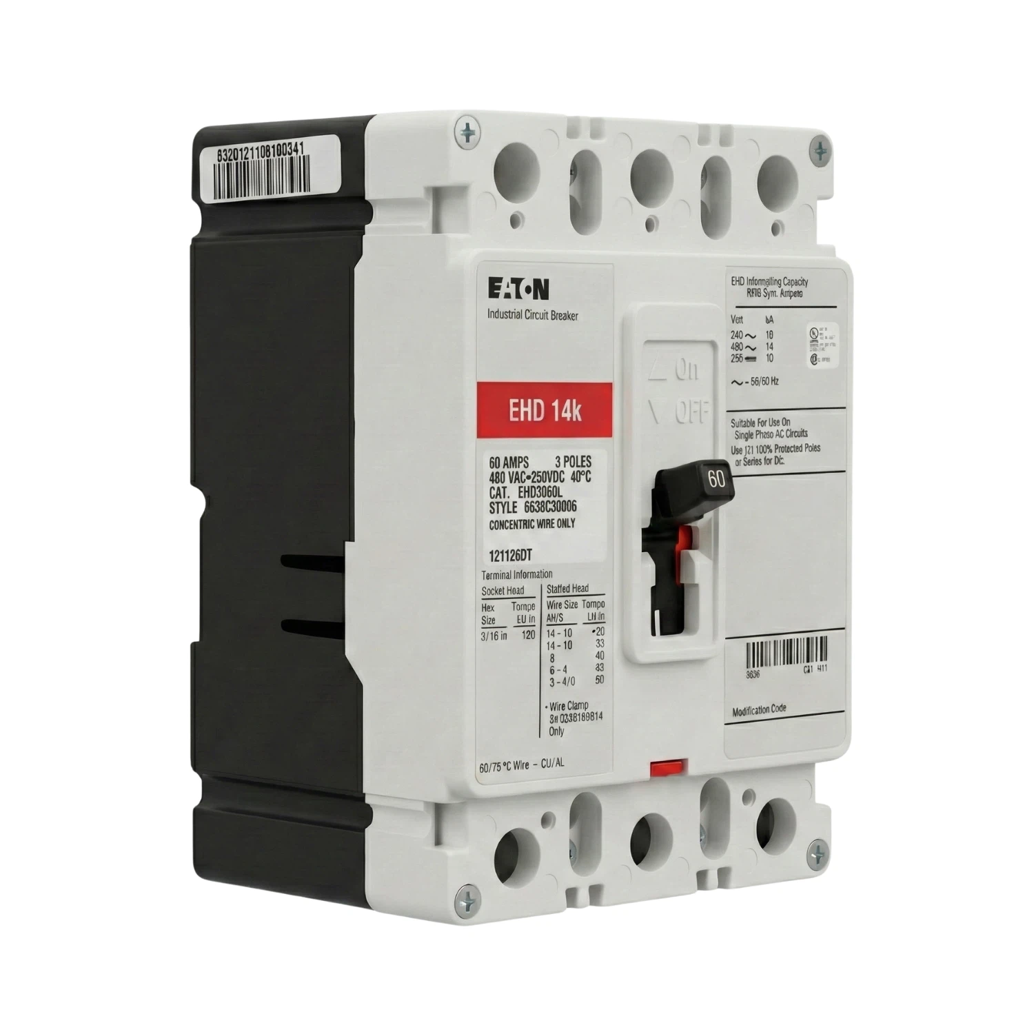 - Capacidad de interrupción (Icu): 18 kA a 240V / 14 kA a 480V.