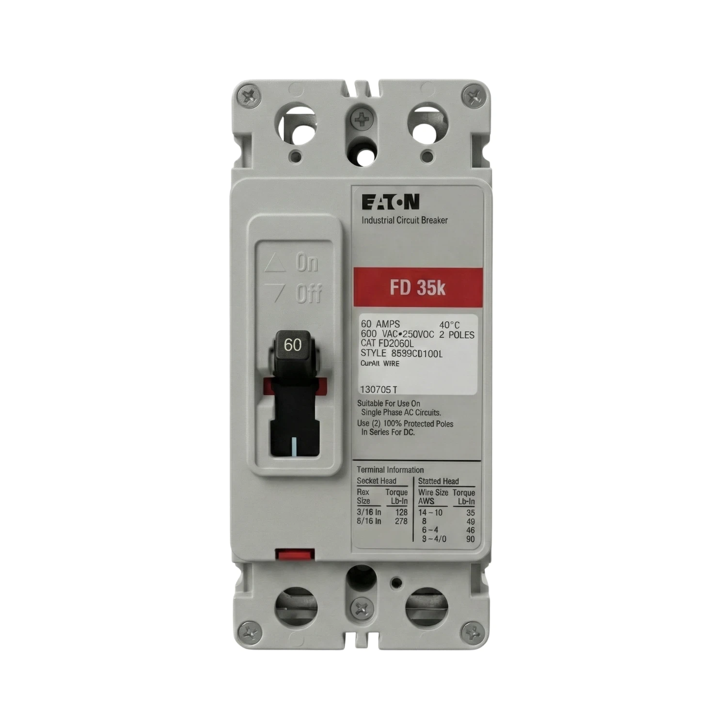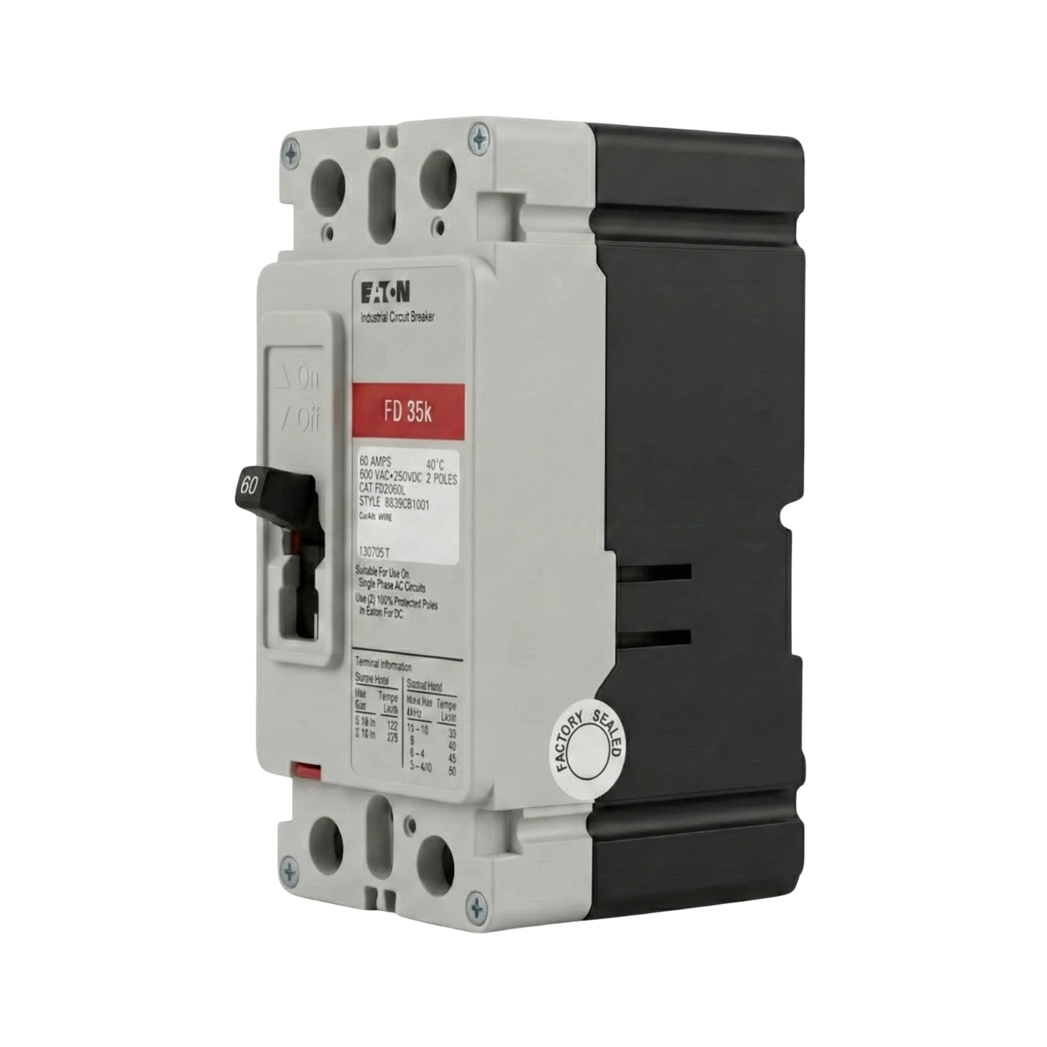 - Capacidad de Interrupción (Icc): 65 kAIC at 240 Vac / 35 kAIC at 480 Vac
