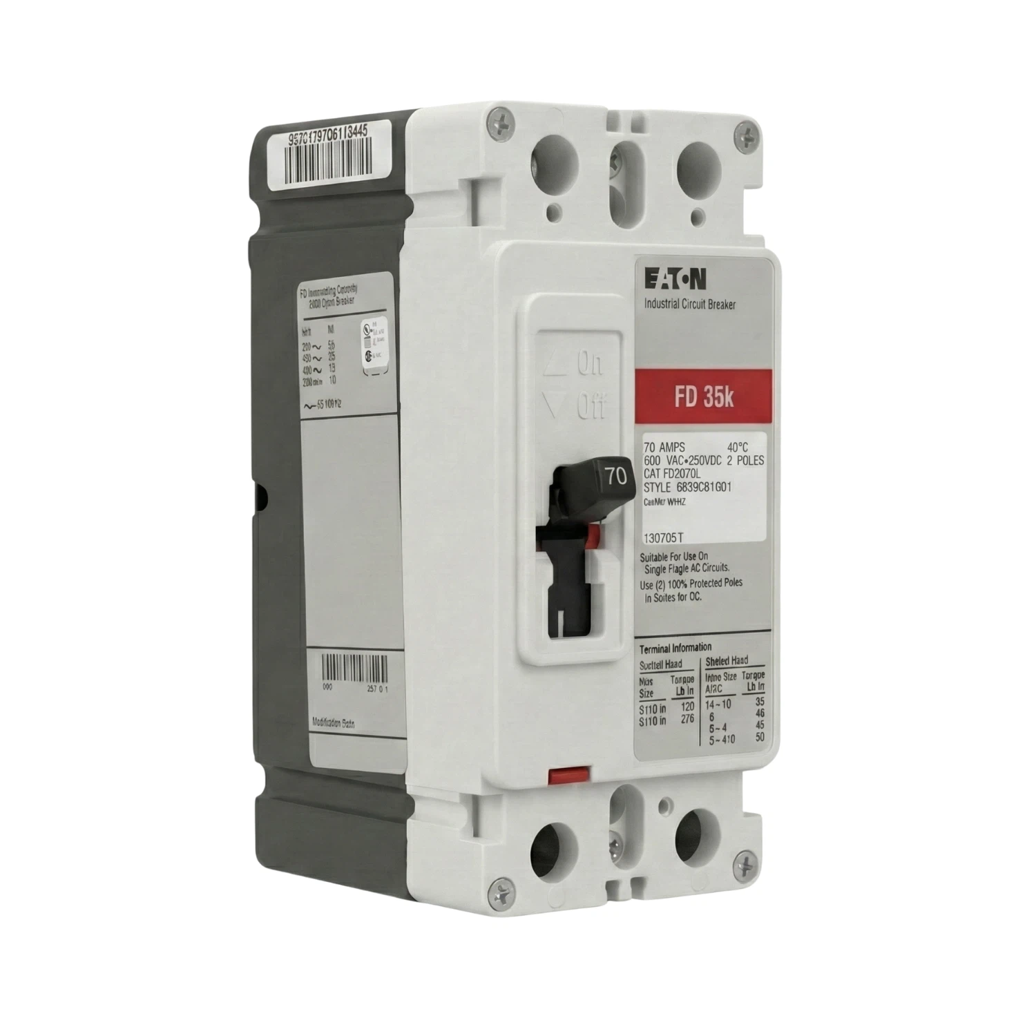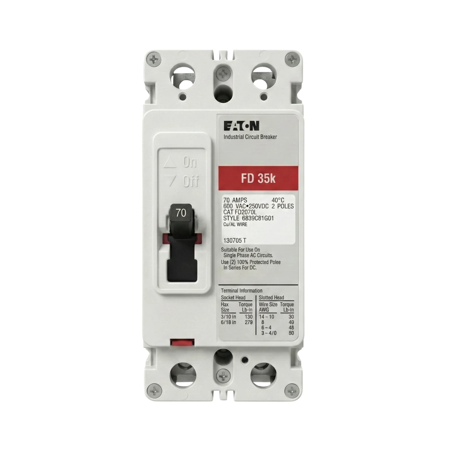 - Capacidad de Interrupción (Icc): 65 kAIC at 240 Vac / 35 kAIC at 480 Vac