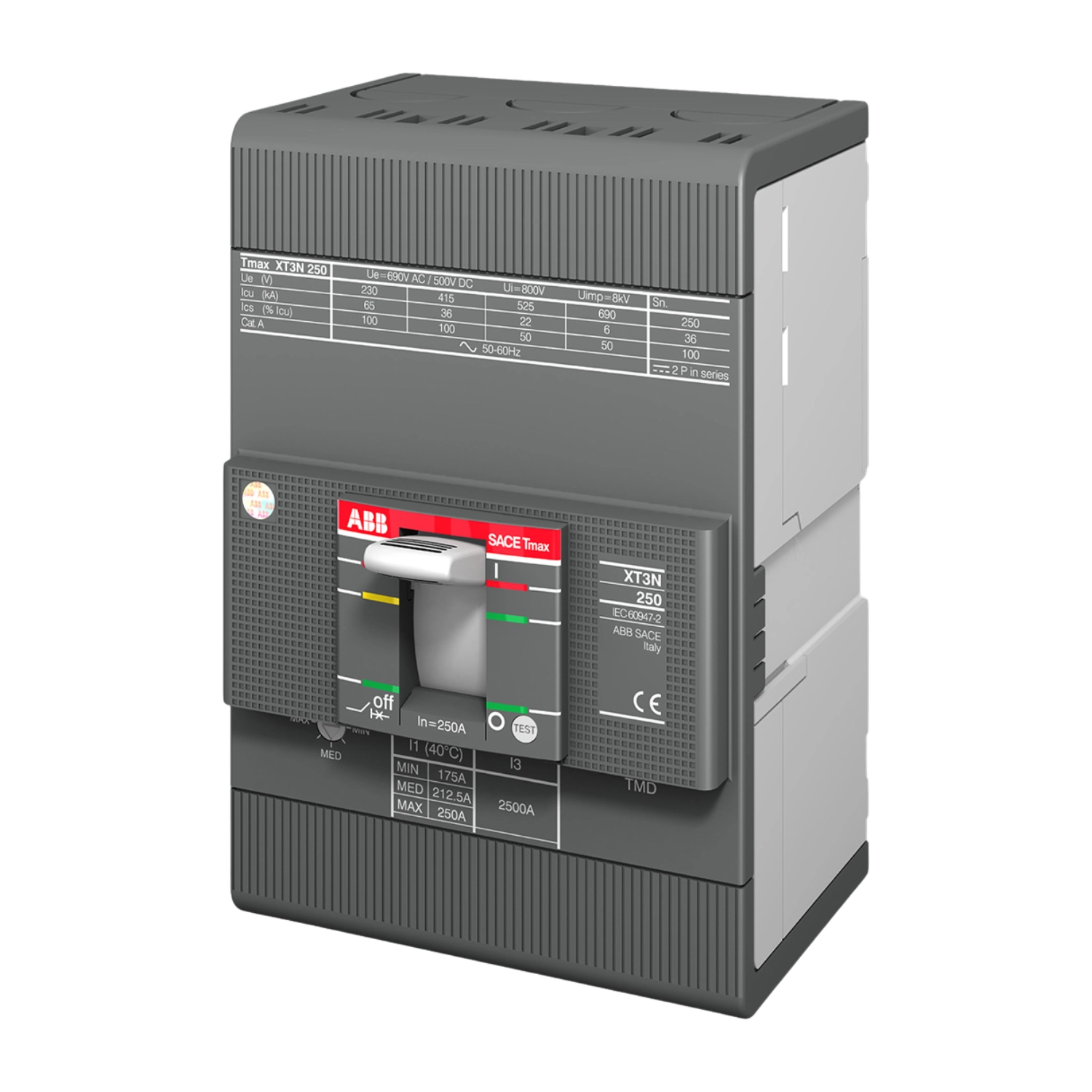 - Capacidad de interrupción (Icu): 50 kA (a 240V) / 25 kA (a 480V).