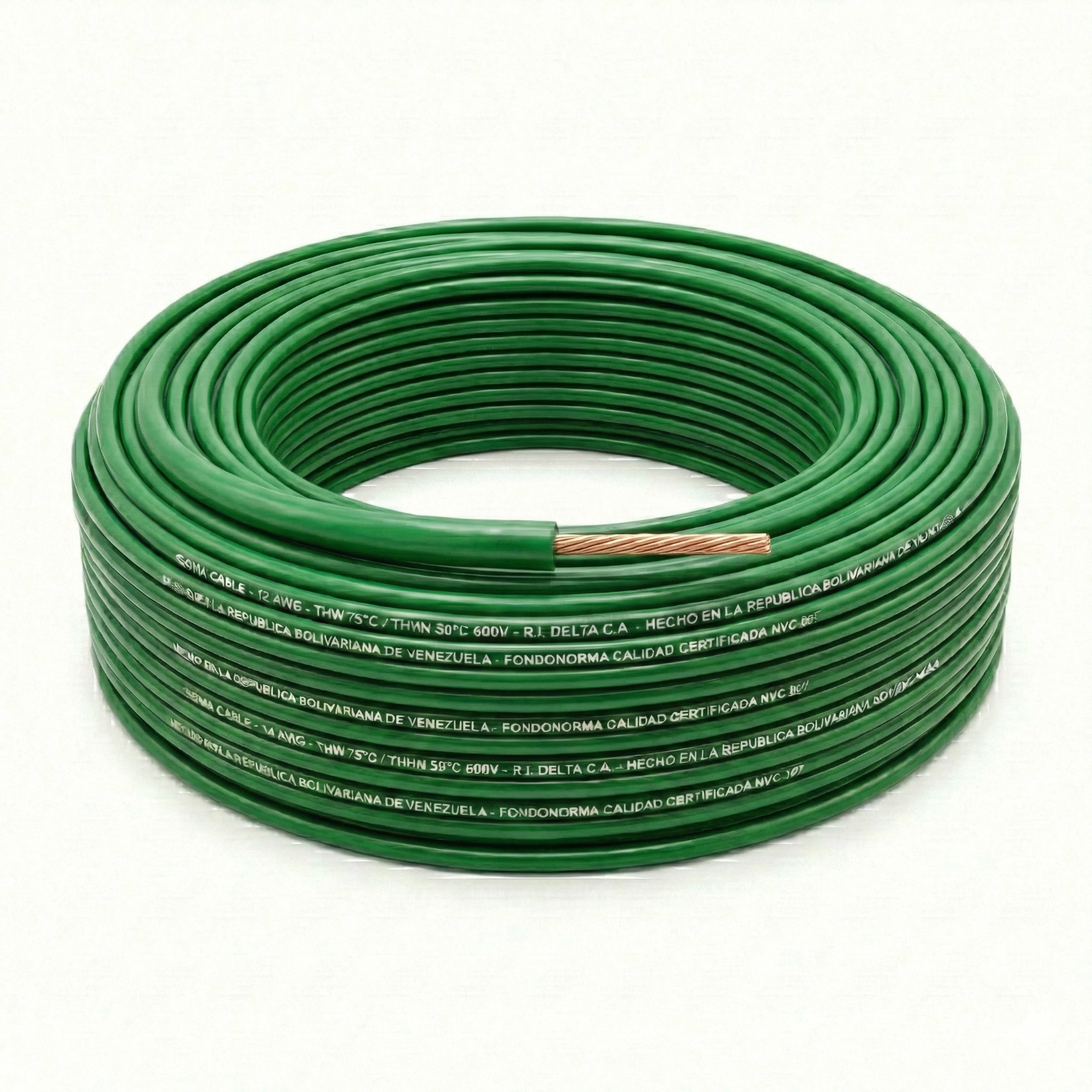 Cable THHW Calibre 12 AWG Verde, Rollo 100m, Sigma