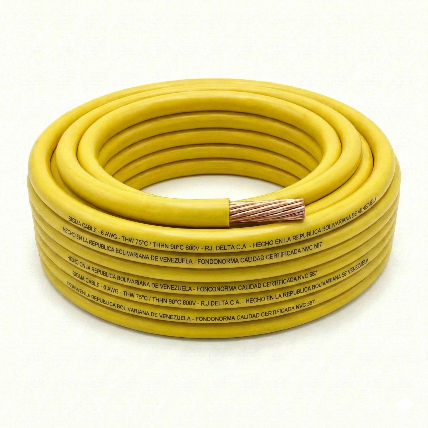 Cable THHW Calibre 6 AWG Amarillo, Rollo 100m, Sigma