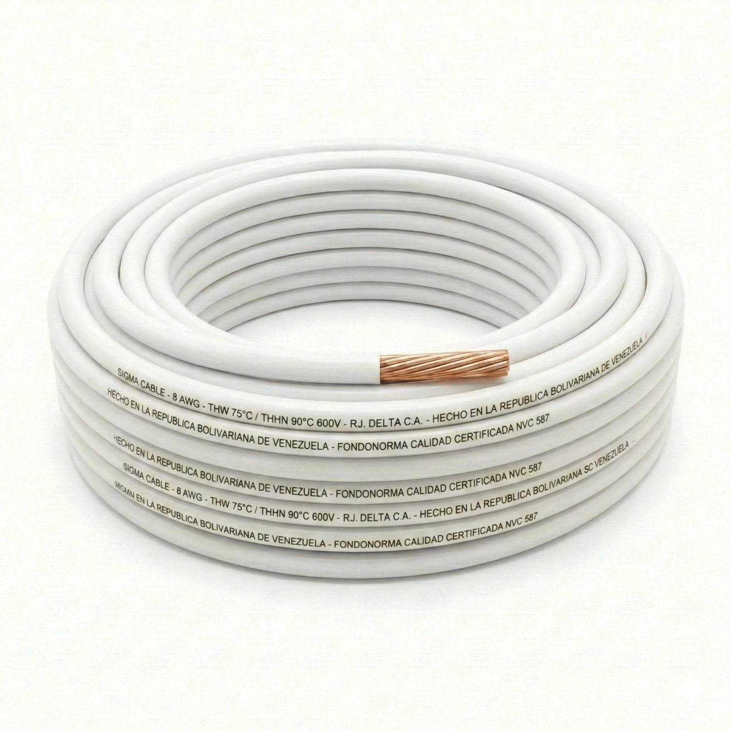 Cable THHW Calibre 8 AWG Blanco, Rollo 100m, Sigma