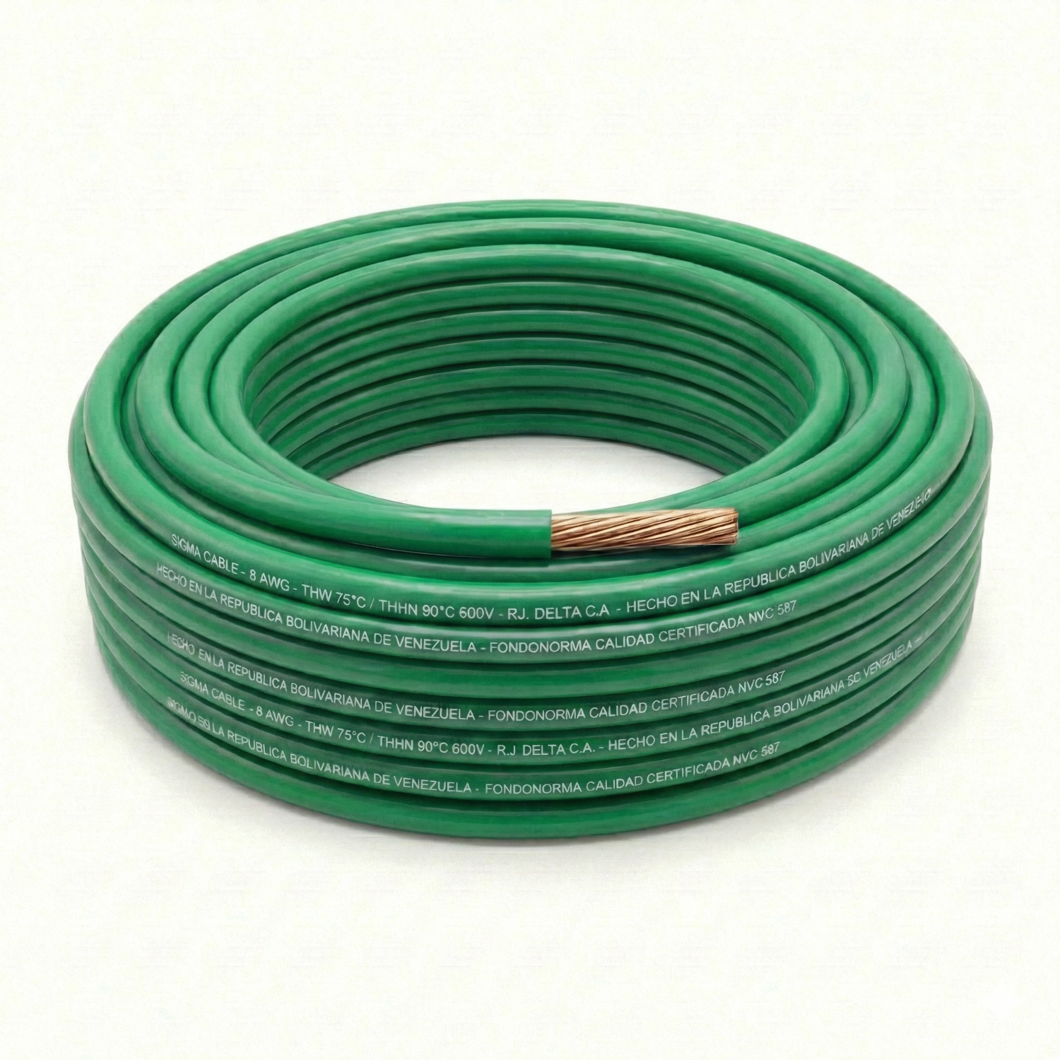 Cable THHW Calibre 8 AWG Verde, Rollo 100m, Sigma