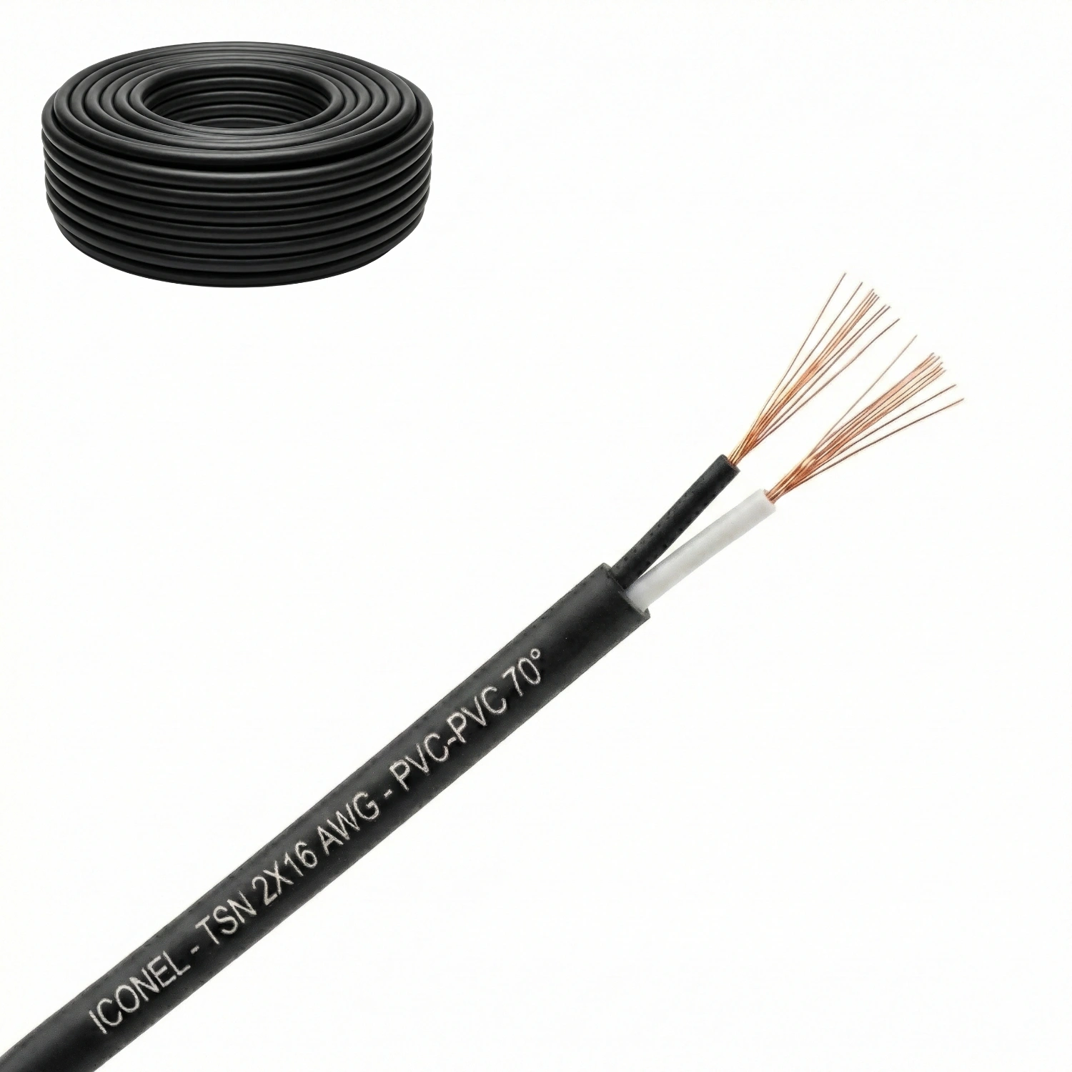 Cable TSN Calibre 2×16 AWG, Negro, PVC-PVC 70° Iconel