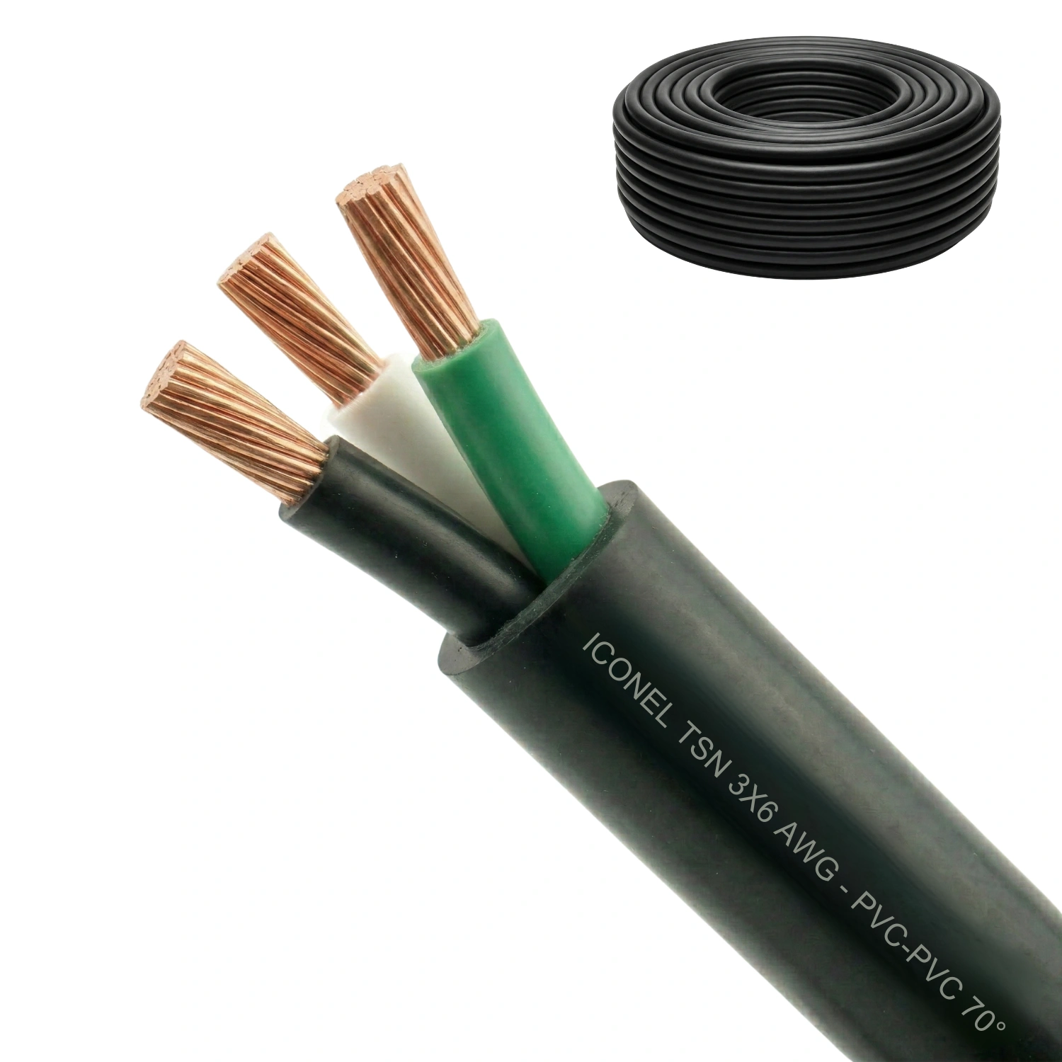 Cable TSN Calibre 3×6 AWG, Negro, PVC-PVC 70° Iconel