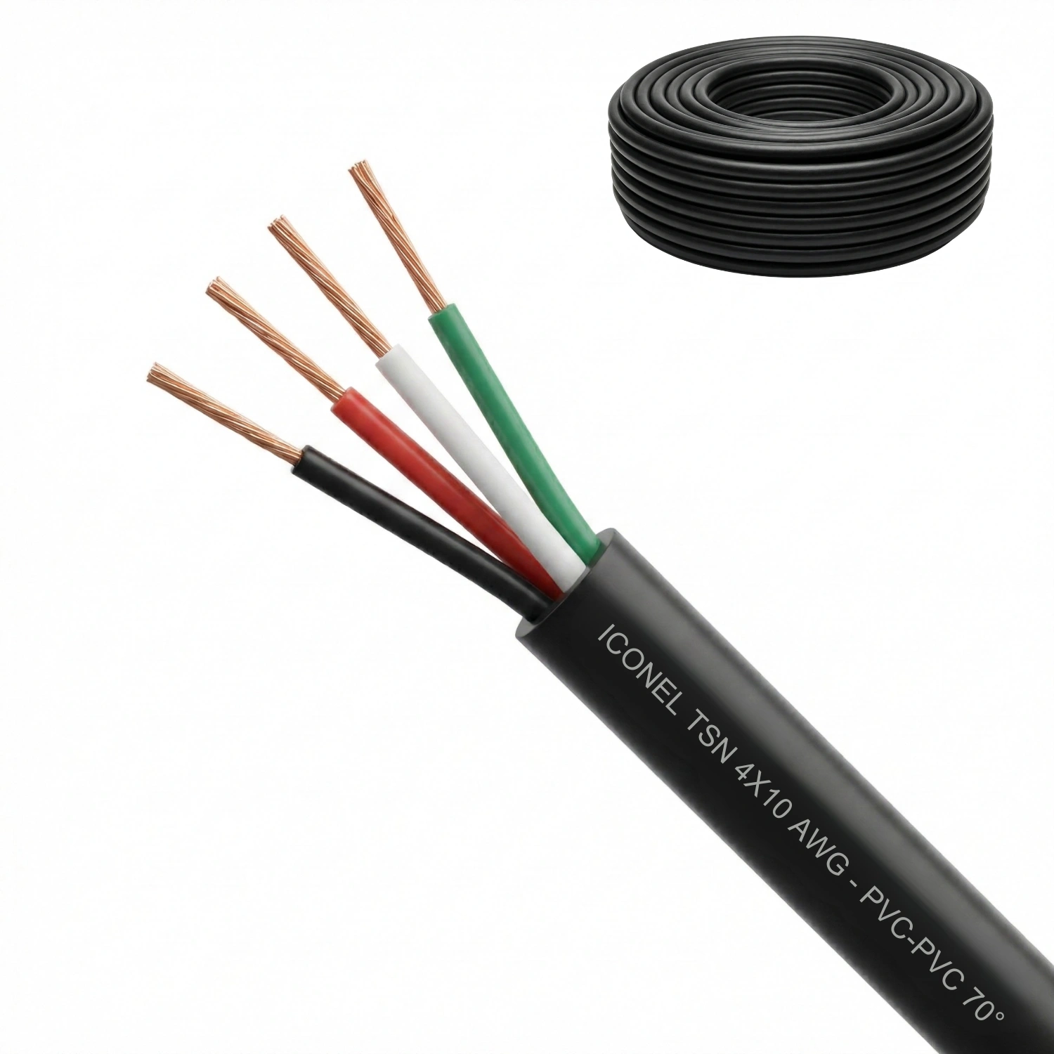 Cable TSN Calibre 4×10 AWG, Negro, PVC-PVC 70° Iconel