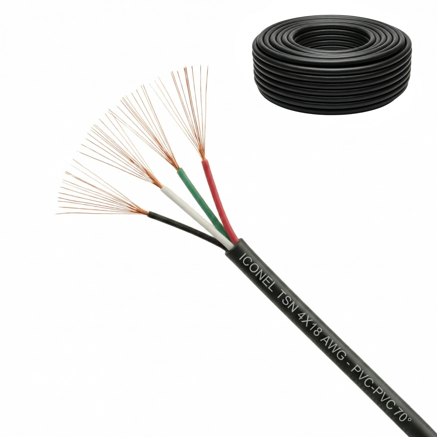 Cable TSN Calibre 4×18 AWG, Negro, PVC-PVC 70° Iconel