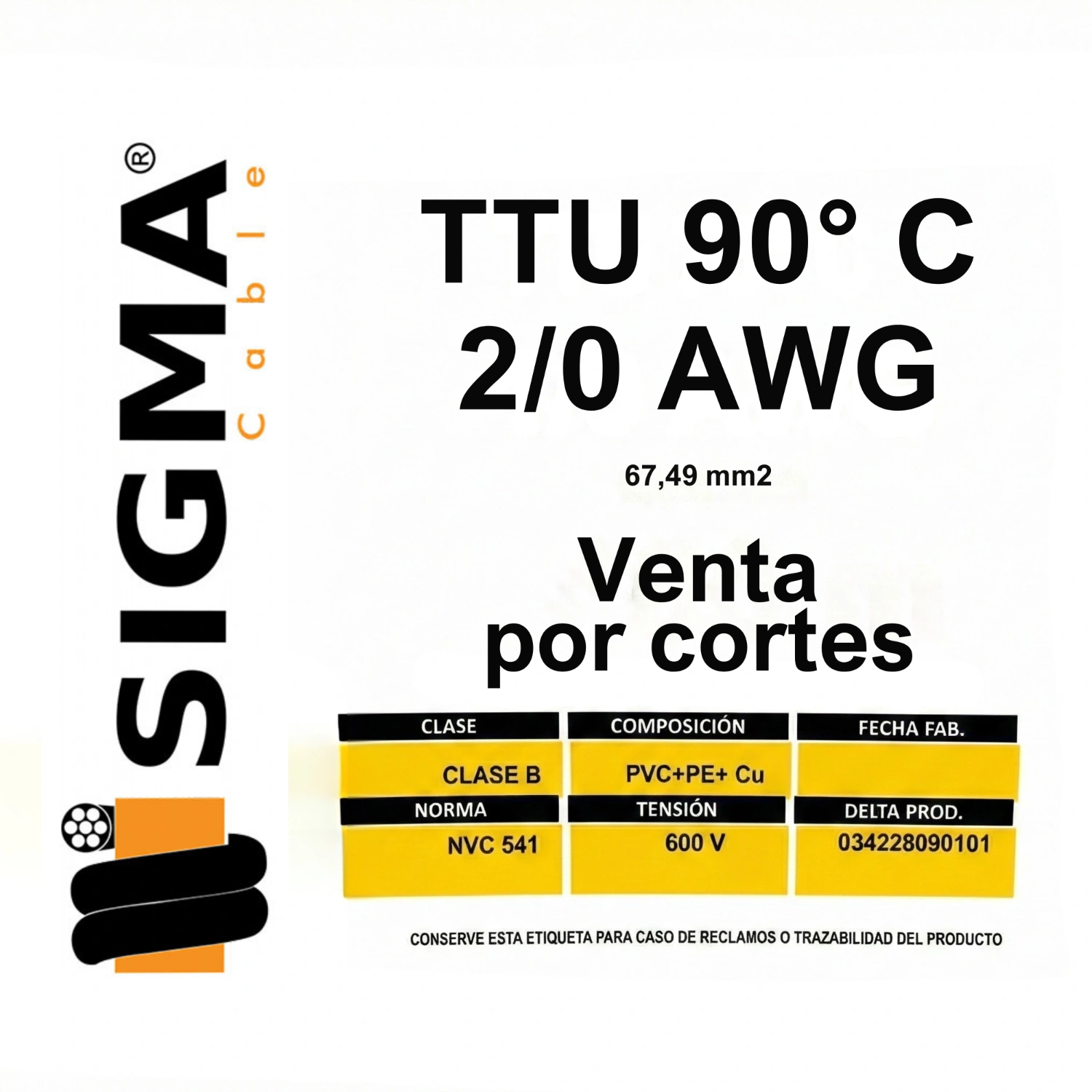 Cable TTU Calibre 2/0 AWG Negro, 90°, Por Metro, Sigma