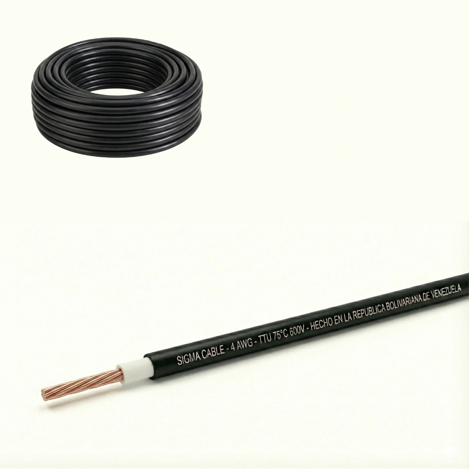Cable TTU Calibre 4 AWG Negro, 75°, Por Rollo, Sigma
