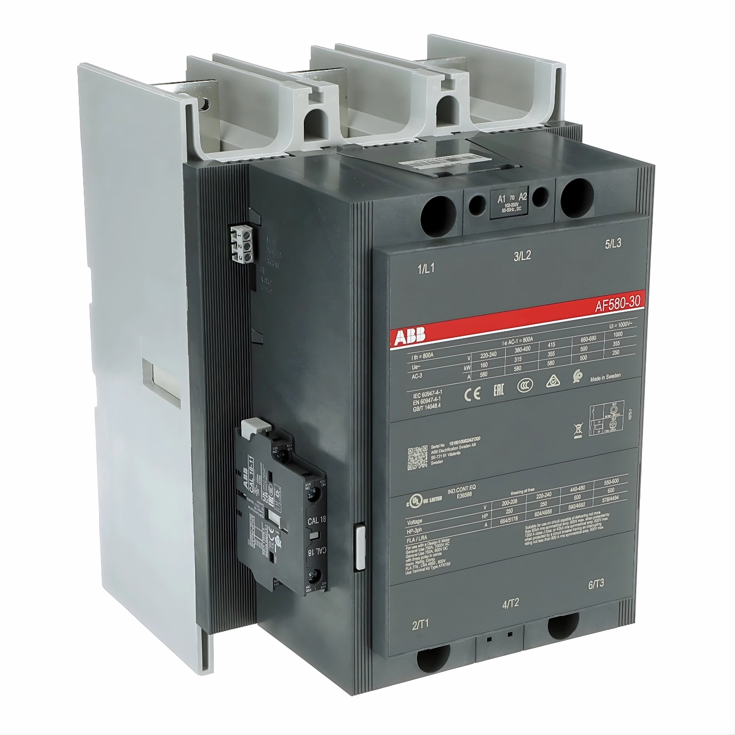 - Amperaje: AC-3: 580A / AC-1: 800A