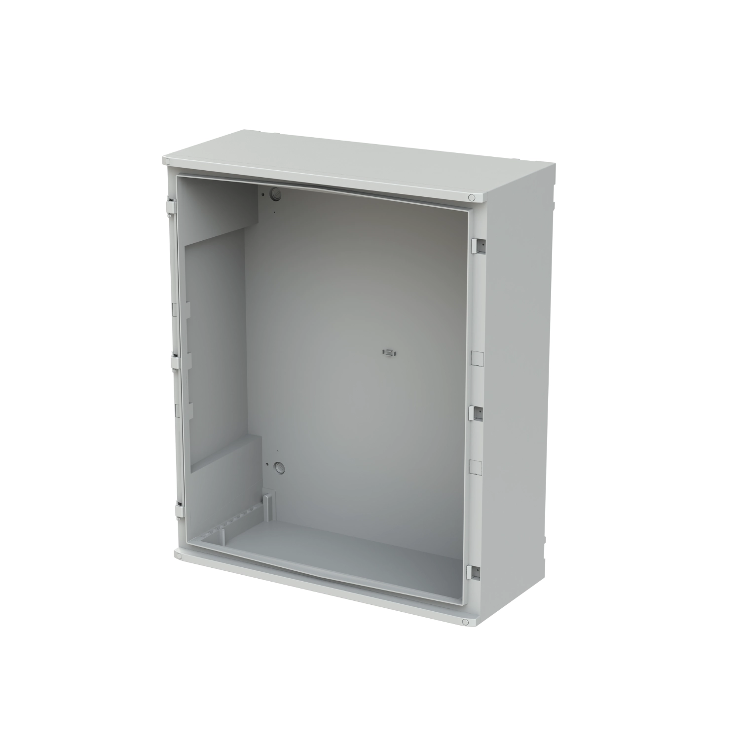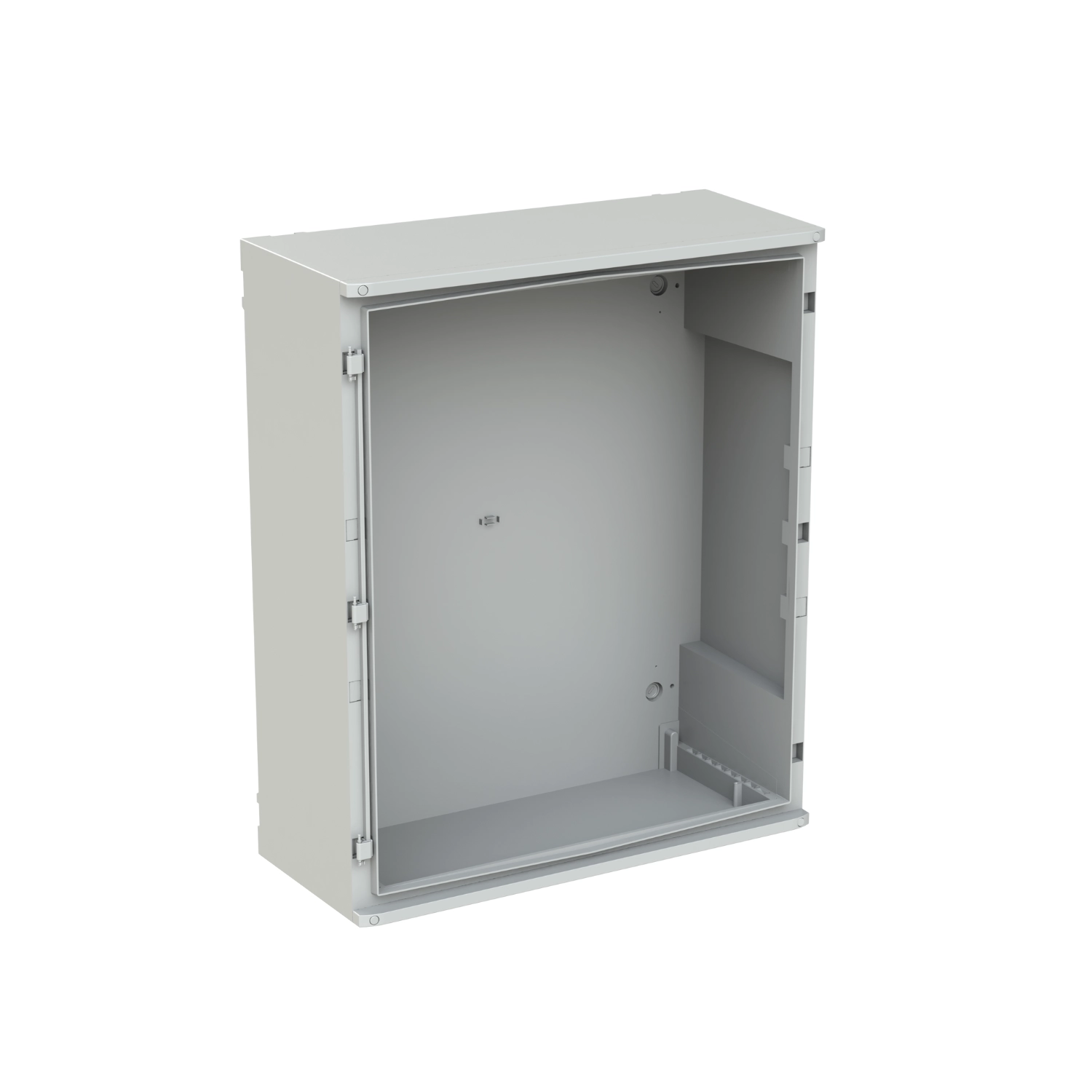 • Material: Gabinete y puerta en termoplástico; placa interna en acero galvanizado.