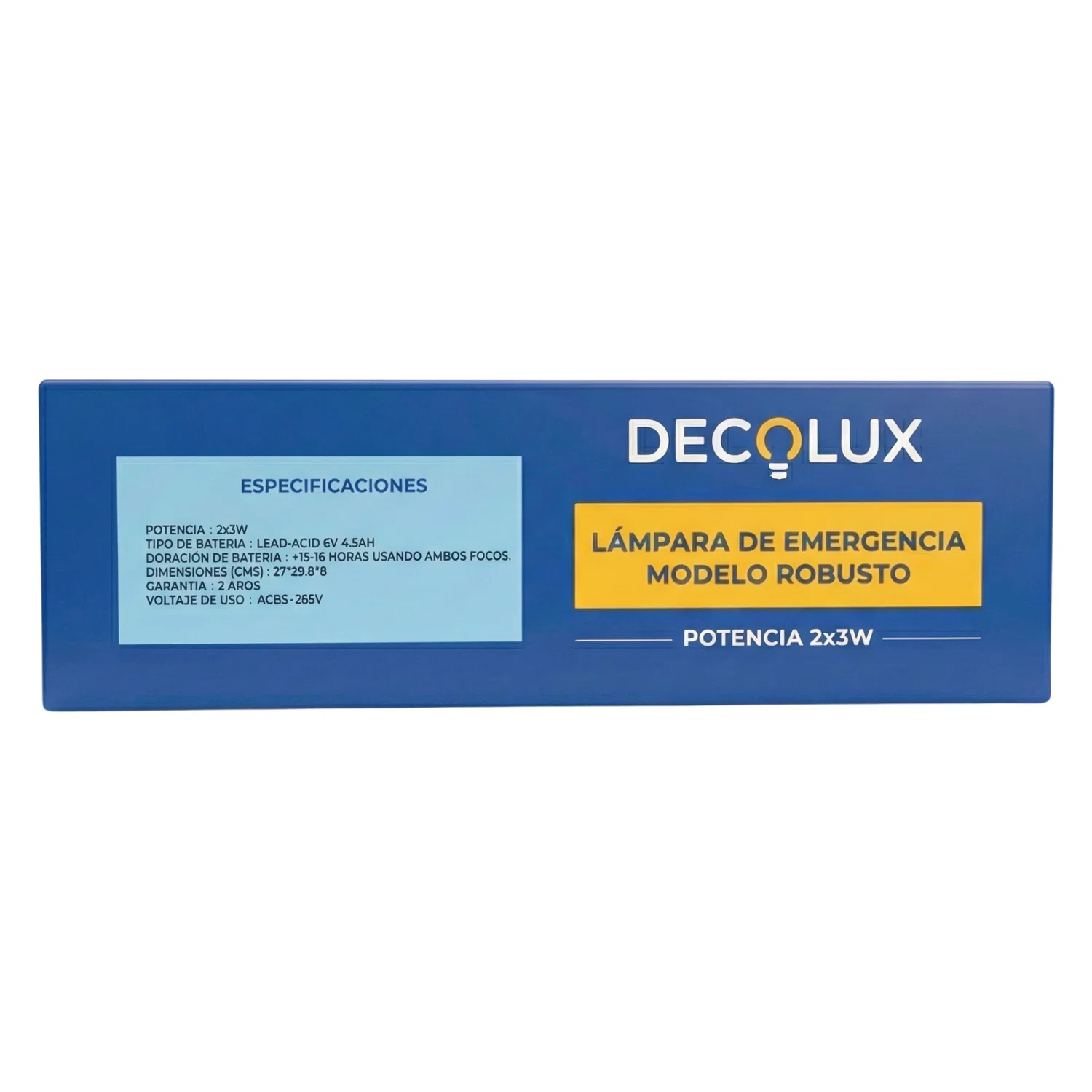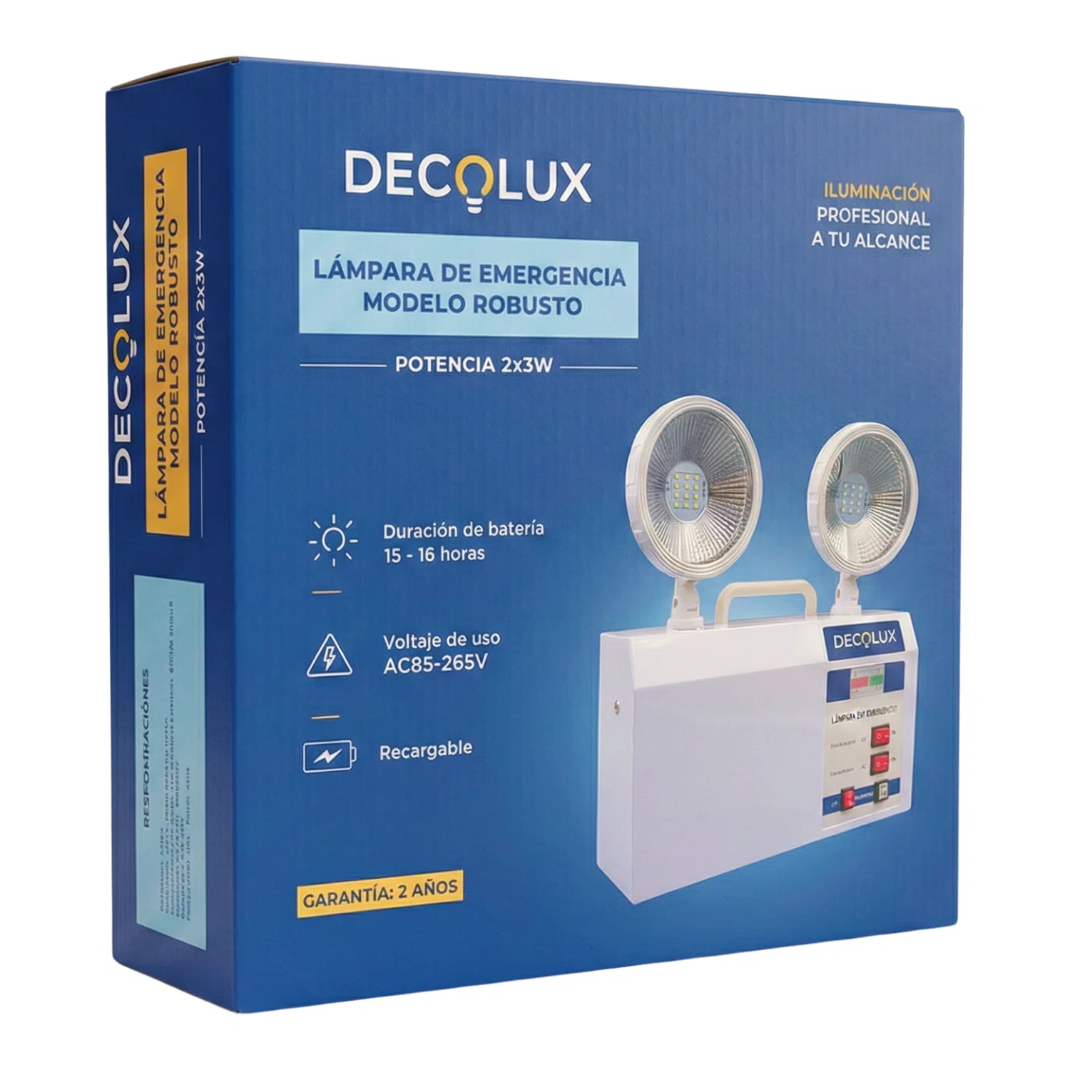 - Función: Luminaria de emergencia profesional diseñada para activarse automáticamente ante fallas eléctricas, ofreciendo un respaldo de larga duración.