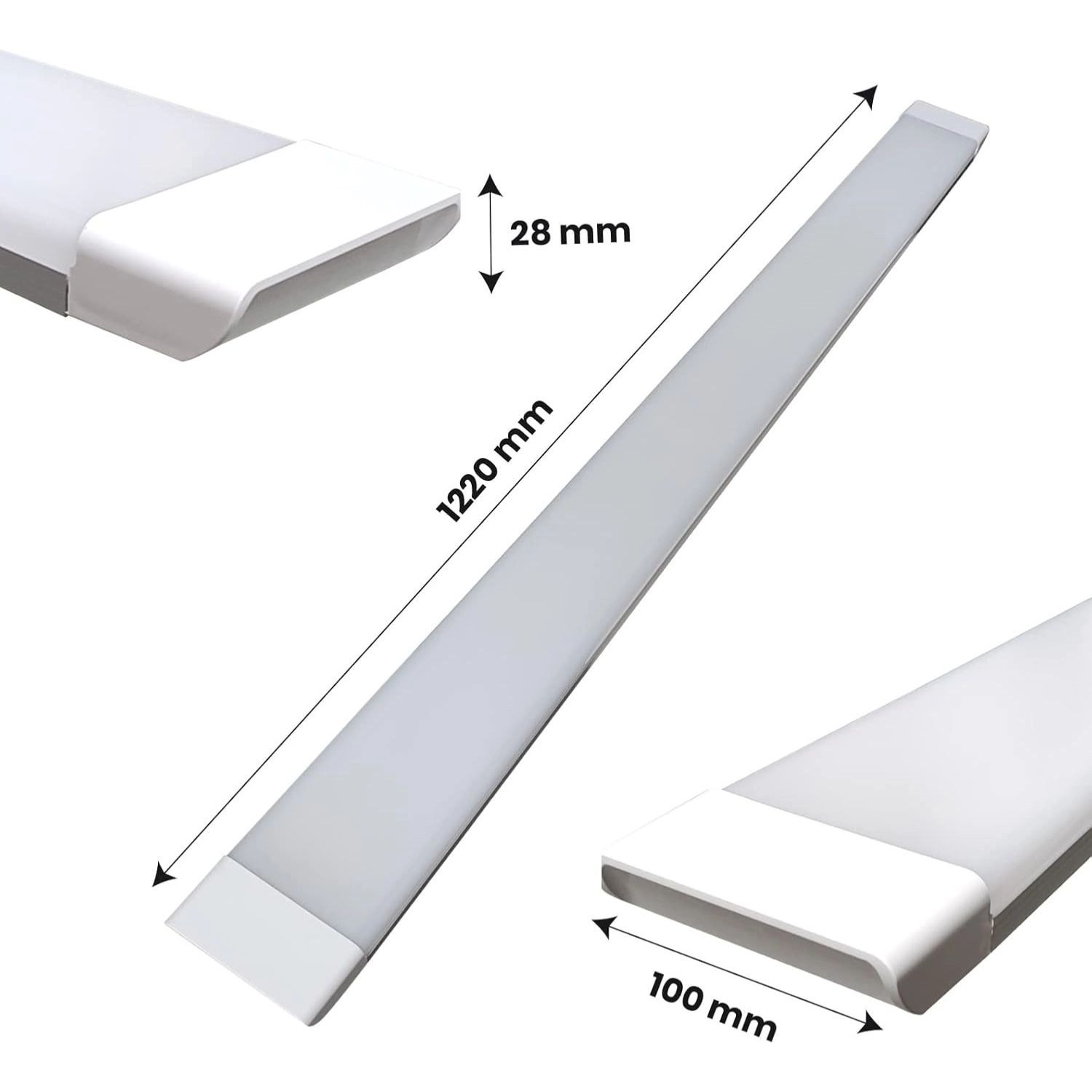 - Función: Luminaria de diseño lineal y moderno para uso interior, ideal para la iluminación general de espacios como oficinas, talleres, garajes y áreas de trabajo.