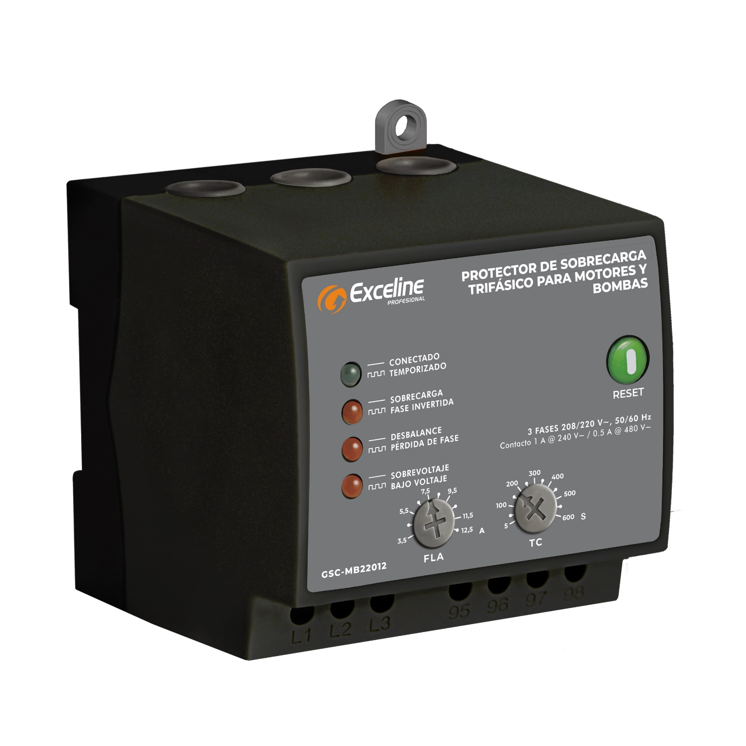 Protector de Sobrecarga Motores y Bombas, 220V, 3.5-12.5A, GSC-MB22012, Exceline