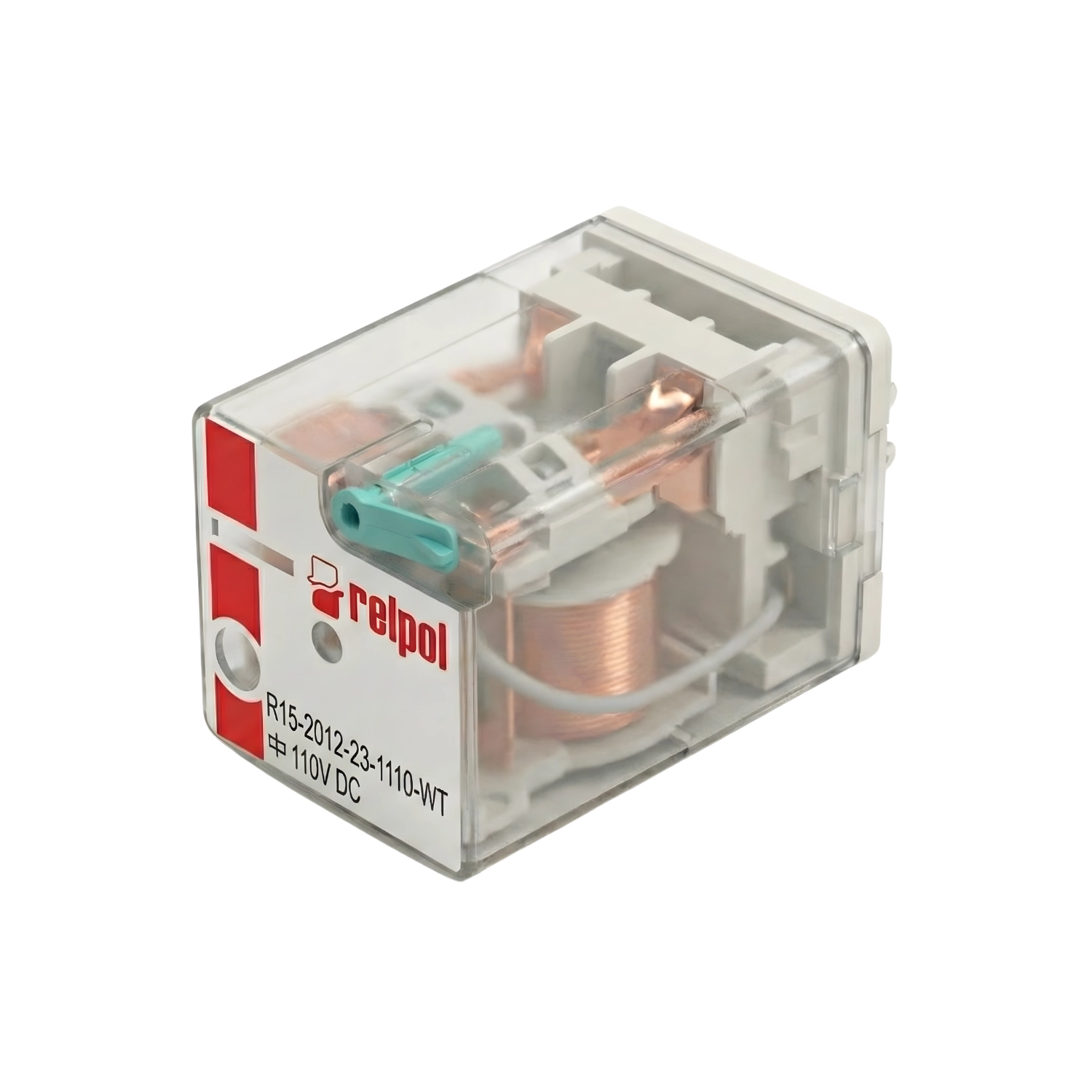 Relé Auxiliar Industrial Estándar R15 2CO 8 Pines – 110V DC, Relpol