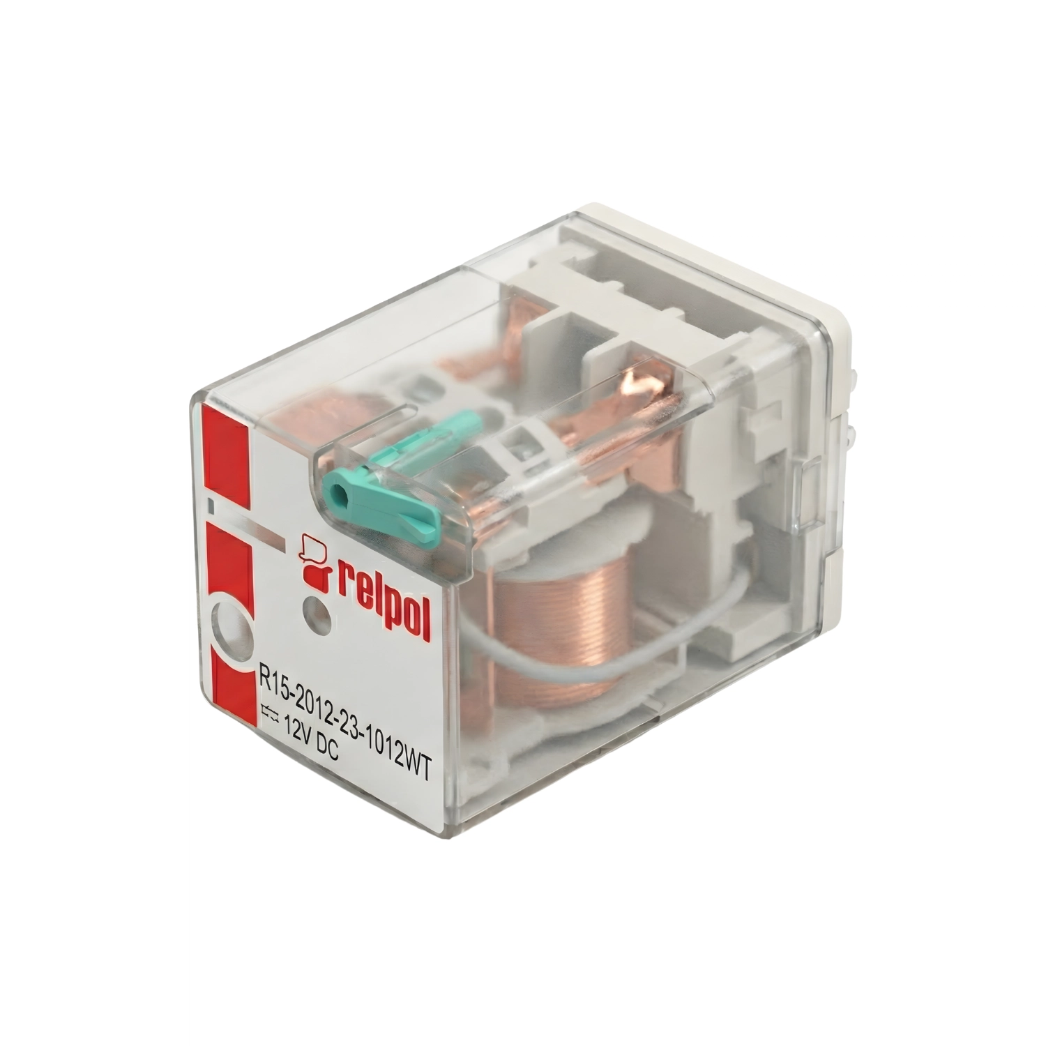 Relé Auxiliar Industrial Estándar R15 2CO 8 Pines – 12V DC, Relpol
