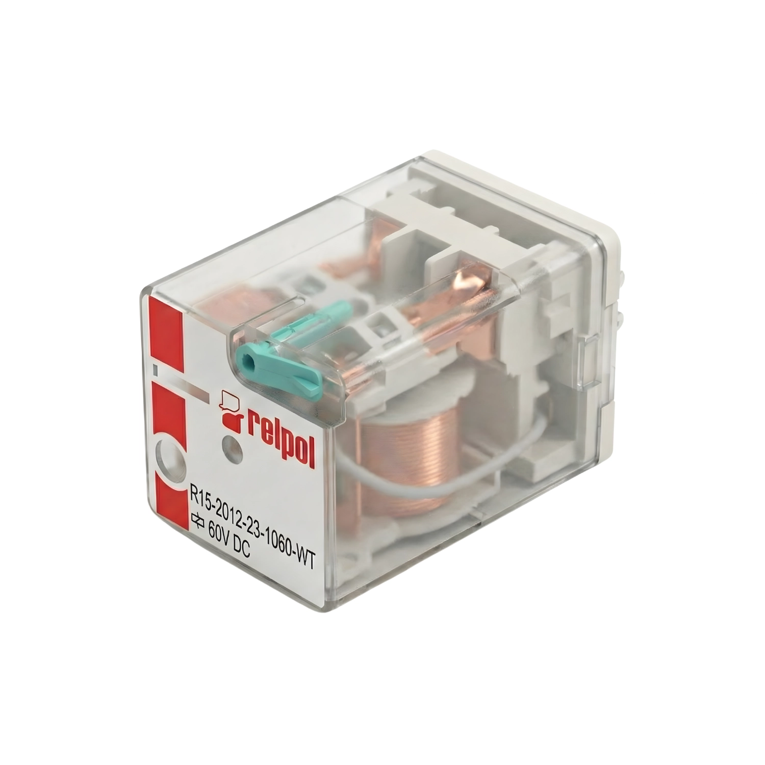 Relé Auxiliar Industrial Estándar R15 2CO 8 Pines – 60V DC, Relpol
