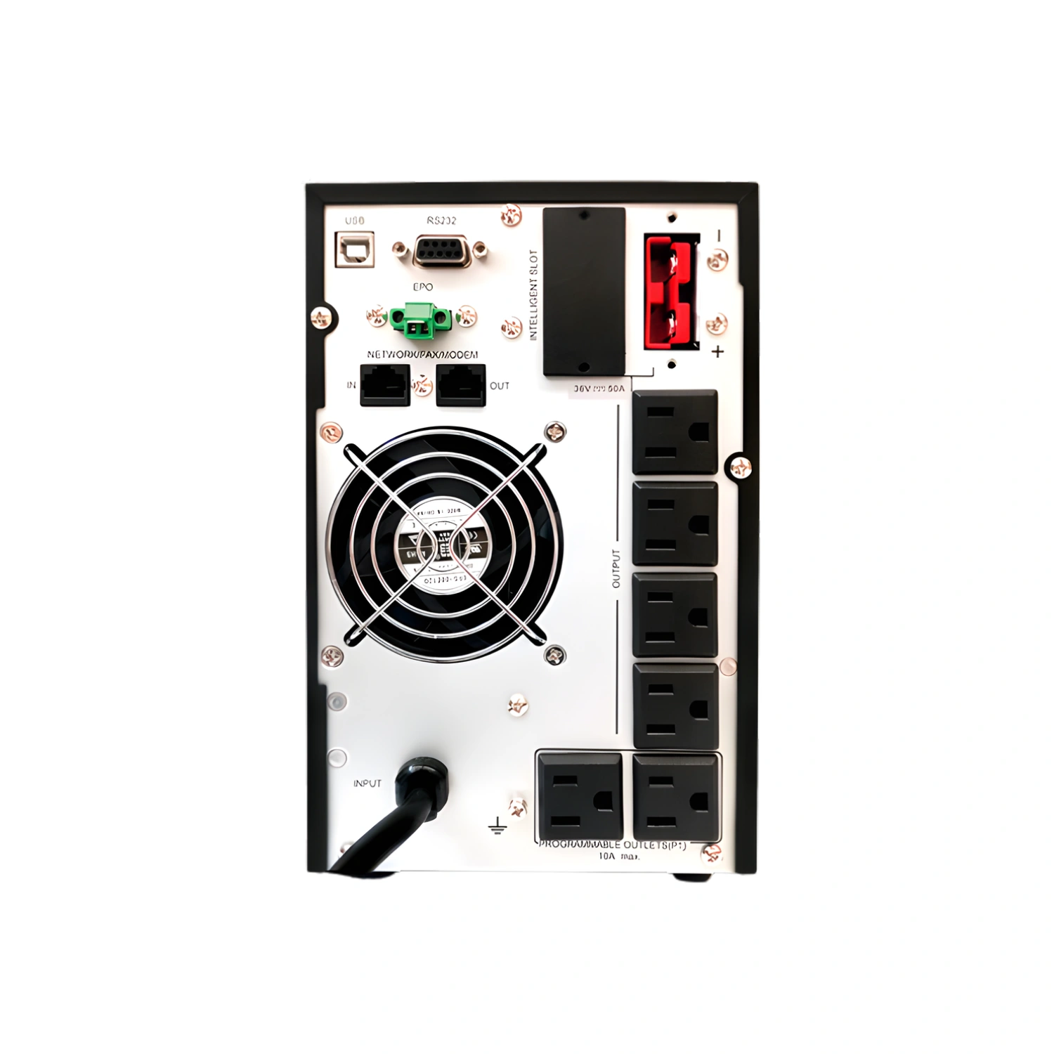 - Tecnología: On-Line de Doble Conversión con salida de onda senoidal pura y bypass automático integrado.